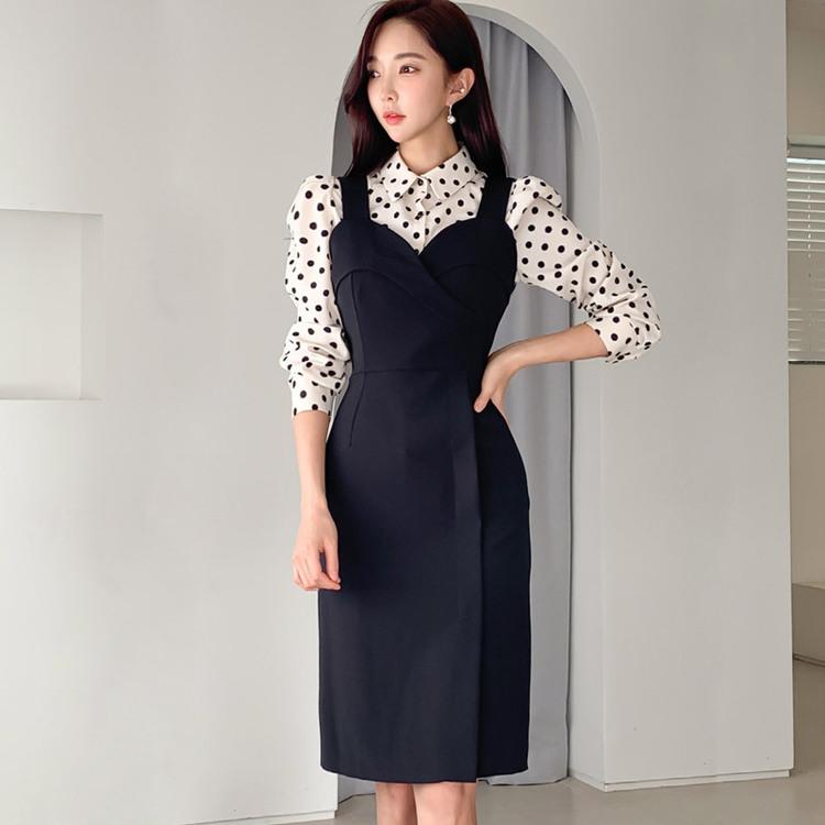 フェイクツーピース ワンピース ウエストリボン 韓国 C1364 Damaiputra Com